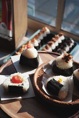At our stall, we offer a variety of onigiri flavours, from meaty and fish to vegetarian options, each made fresh daily with traditional Japanese ingredients, providing a comforting taste in every bite.